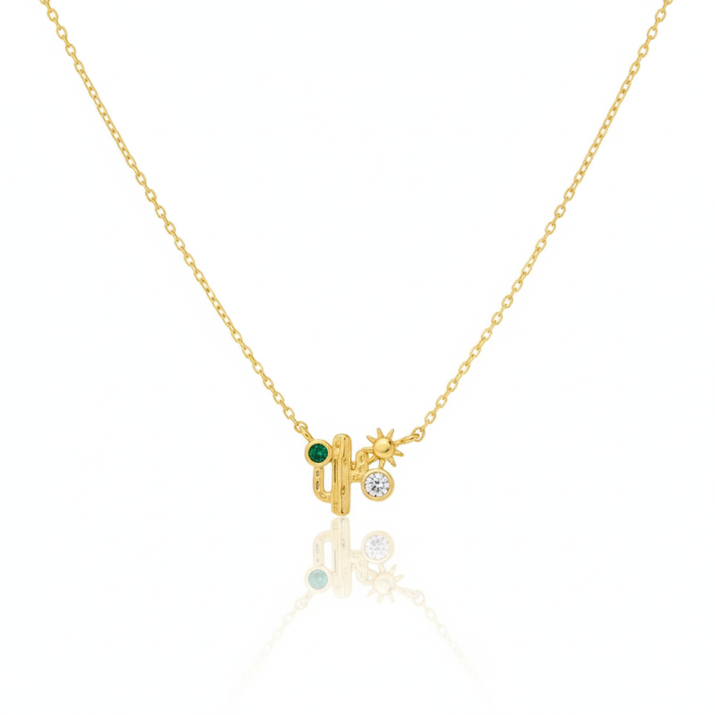 This trending necklace features a modern gold plated cubic zirconia cactus western pendant style. Explore a refined sense of style with this chic piece, seamlessly elevating your look and adding a playful, fashionable touch. Perfect for women, wives, and moms—ideal as a gift for birthdays & anniversaries.