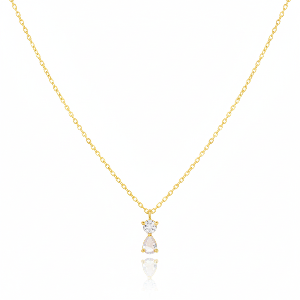 This trending necklace brings a luxurious gold plated cubic zirconia circle and teardrop pendant design. Discover the perfect balance of subtlety and flair as this elegant piece effortlessly completes your look—perfect for women, wives, and moms, and an ideal gift for birthdays & anniversaries.