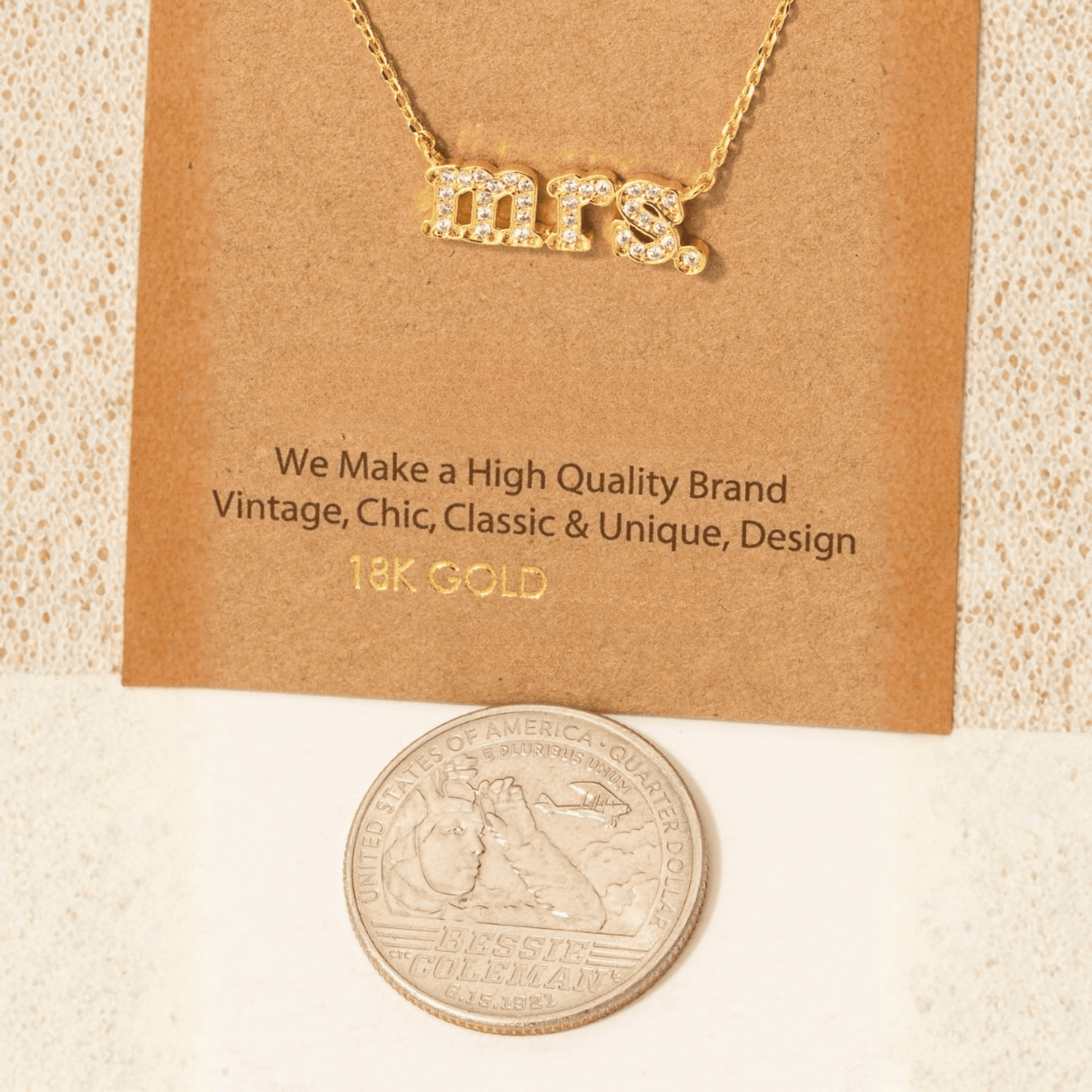 This necklace brings a stunning gold plated cubic zirconia pave “Mrs” pendant style. Witness the transformative power of accessories as this piece effortlessly redefines your fashion narrative—perfect for Jewelry for Women Wife Mom and ideal for birthdays & anniversaries.