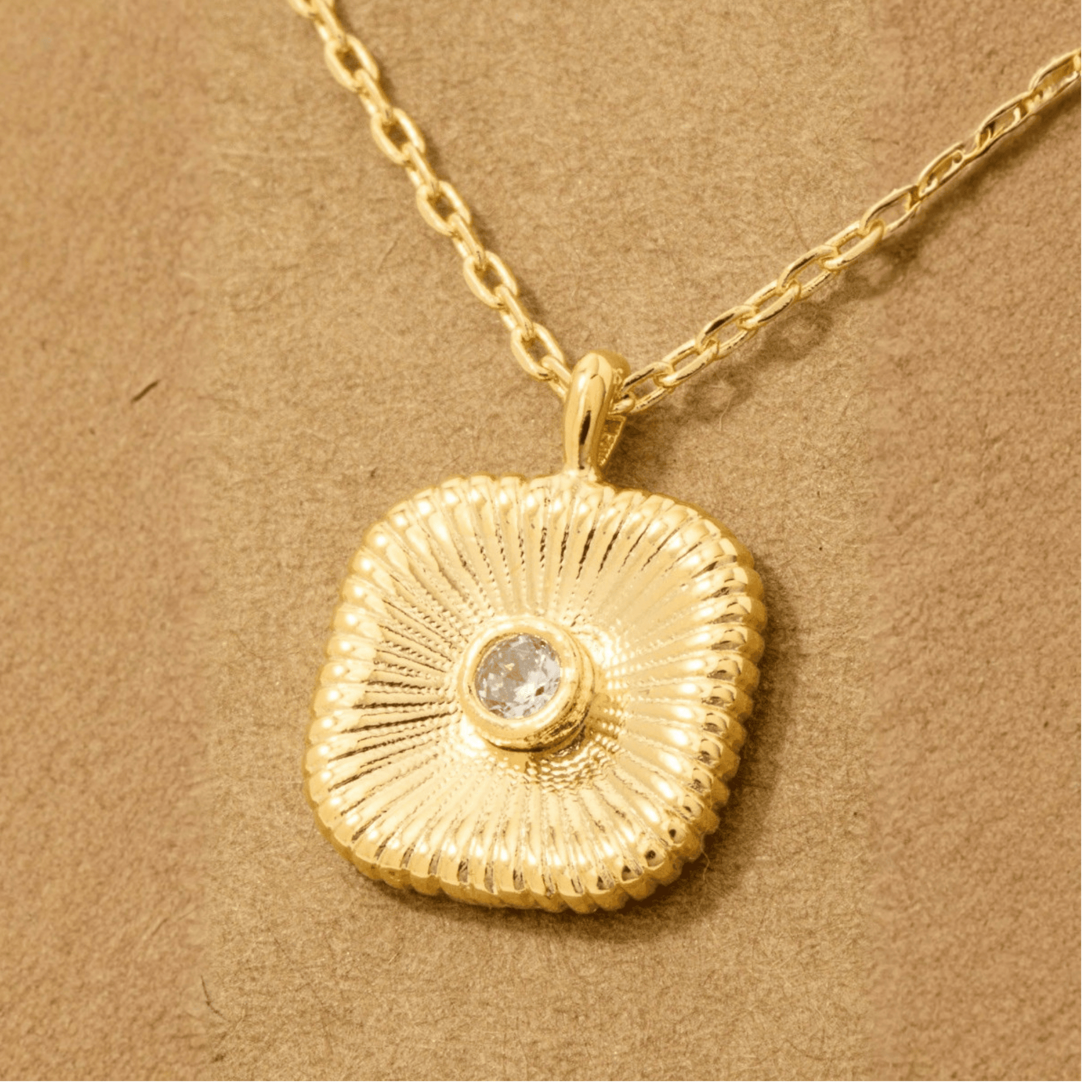 This trending necklace brings a luxurious gold plated cubic zirconia stud square pendant style. Witness the transformative power of accessories as this elegant piece effortlessly redefines your fashion narrative—perfect for women, wives, and moms, and an ideal gift for birthdays & anniversaries.