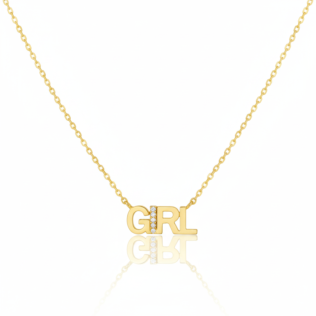 18K Gold Plated CZ Studded Girl Pendant Necklace