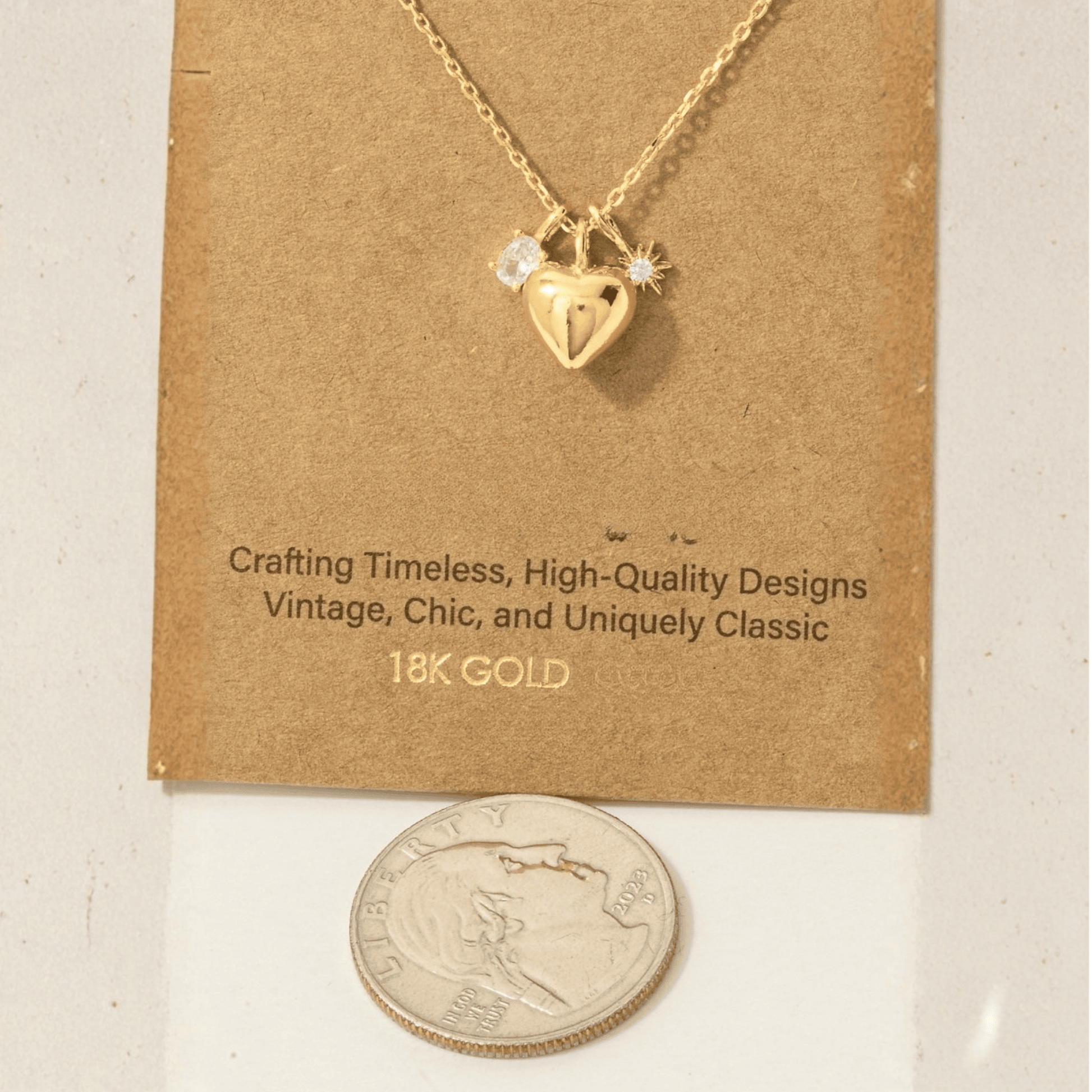 This trending necklace introduces a stunning gold plated heart and cubic zirconia charms chain necklace style. Witness the perfect fusion of style and functionality as this piece effortlessly complements your lifestyle.