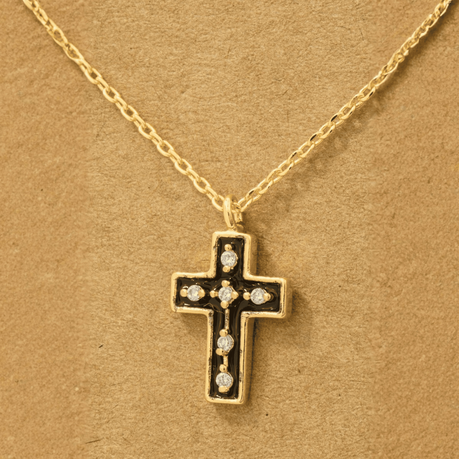 18K Gold Plated Outline Enamel Cross Pendant Necklace