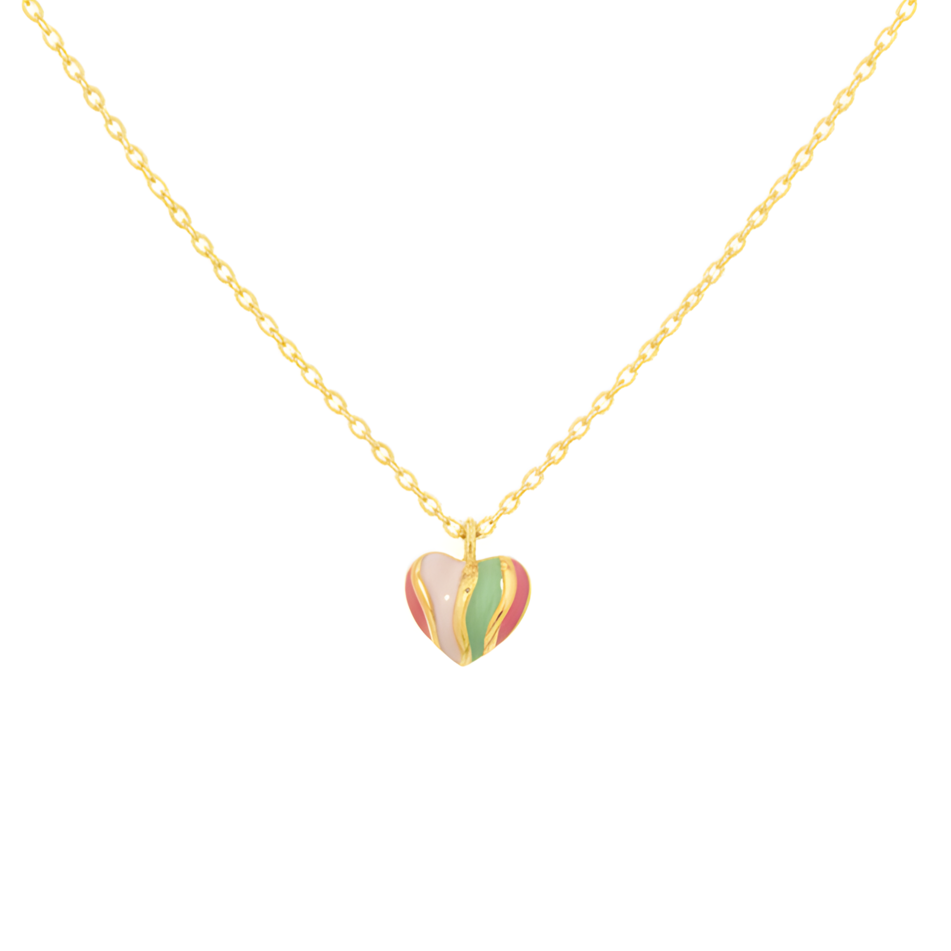 This trending necklace showcases a timeless gold plated rainbow enamel heart pendant necklace style. Revel in the intricate design that effortlessly distinguishes this necklace, making it a standout statement piece.