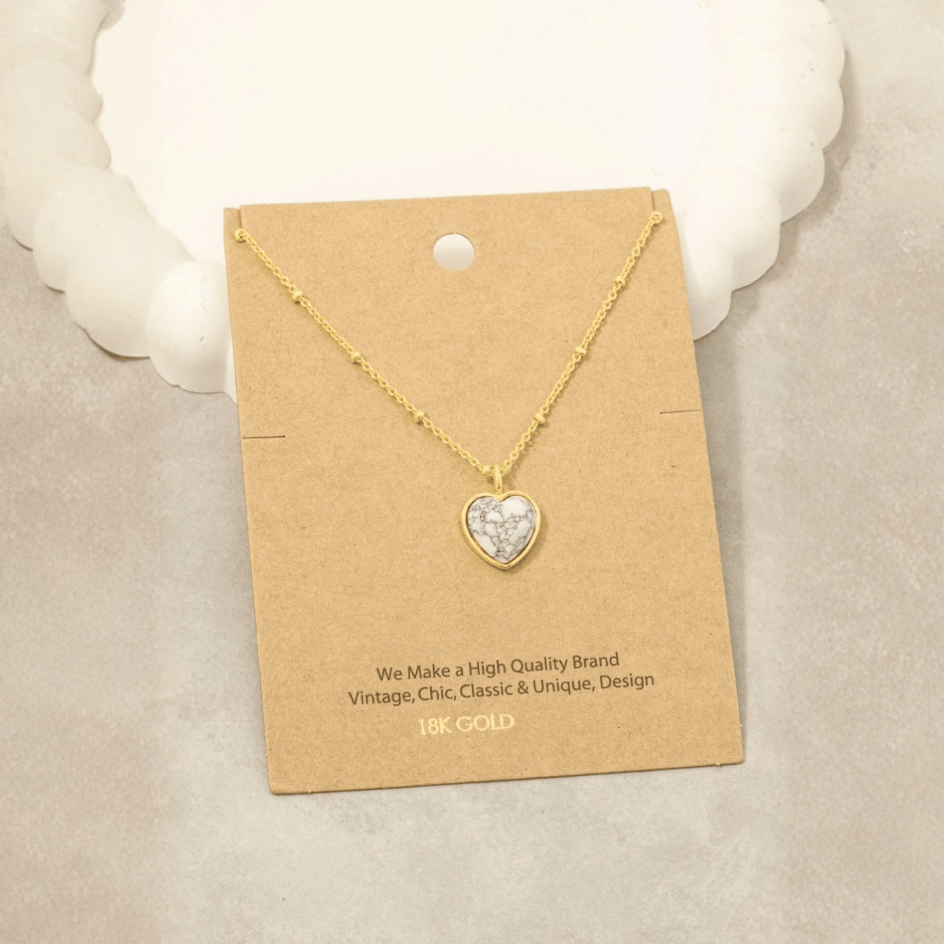 This trending necklace showcases a timeless gold plated stone heart pendant style. Indulge in the artistry of accessorizing with this unique and elegant piece—perfect for women, wives, and moms, and ideal for birthdays & anniversaries.